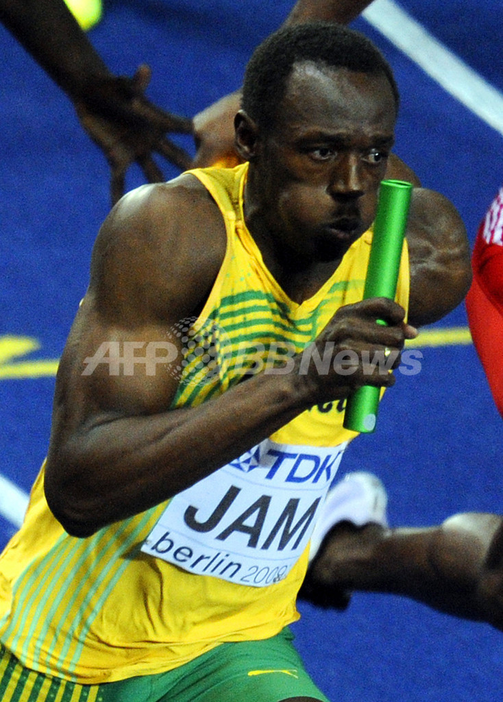 ボルトの北京五輪3冠と今大会3冠の唯一の違いは、個人競技では世界新記録を樹立したが、リレーでは世界新記録を樹立できなかったことだった。ボルトは、「世界記録が出せなかったことに関しては、疲れていた僕に非がある」と語っている。この発言に対し、チームメイトのアサファ・パウエル(Asafa Powell)は、「そうだ、すべてウサインが悪い」と冗談を飛ばしていた。(c)AFP
