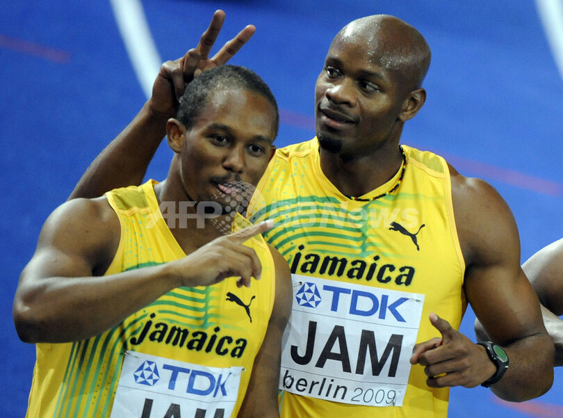 ボルトの北京五輪3冠と今大会3冠の唯一の違いは、個人競技では世界新記録を樹立したが、リレーでは世界新記録を樹立できなかったことだった。ボルトは、「世界記録が出せなかったことに関しては、疲れていた僕に非がある」と語っている。この発言に対し、チームメイトのアサファ・パウエル(Asafa Powell)は、「そうだ、すべてウサインが悪い」と冗談を飛ばしていた。(c)AFP