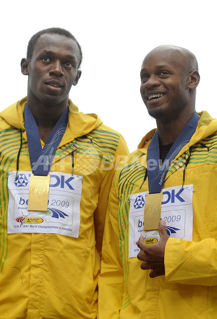 ボルトの北京五輪3冠と今大会3冠の唯一の違いは、個人競技では世界新記録を樹立したが、リレーでは世界新記録を樹立できなかったことだった。ボルトは、「世界記録が出せなかったことに関しては、疲れていた僕に非がある」と語っている。この発言に対し、チームメイトのアサファ・パウエル(Asafa Powell)は、「そうだ、すべてウサインが悪い」と冗談を飛ばしていた。(c)AFP