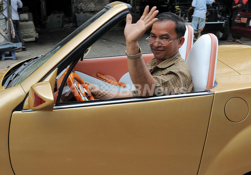 【8月23日 AFP】カンボジアの首都プノンペン(Phnom Penh)の自宅で21日、整備士のNhean Phaloekさんが自分で設計・製作した自動車「Angkor 333-2010」をお披露目した。この自動車は石油が燃料で、ユニークな特徴を数多く備えている。その一つが「利用者がテレパシーで開けることができるドア」だとPhaloekさんは話している。Phaloekさんは、この自動車が量産されることを希望しているそうだ。(c)AFP