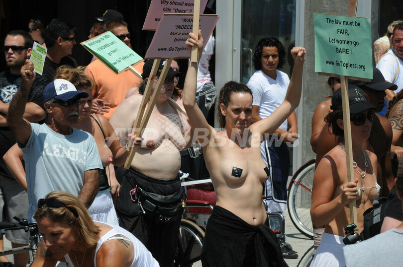 トップレス権も男女平等に!米カリフォルニア州でデモ