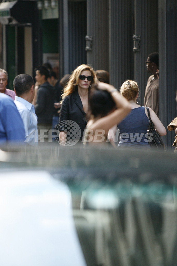 【8月24日 AFP】米女優ジュリア・ロバーツ(Julia Roberts)が20日、ニューヨーク(New York)のマンハッタン(Manhattan)で最新映画『Eat, Pray, Love』の撮影を行った。(c)AFP/Getty Images