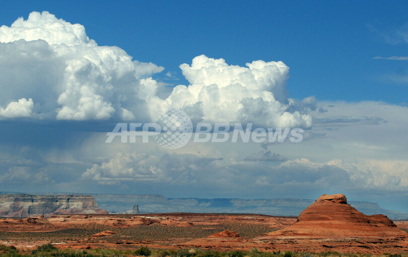 【8月31日 AFP】米アリゾナ(Arizona)州ページ(Page)近郊のパウエル湖(Lake Powell)は、全長約299キロメートル、外周は3154キロメートルで米大陸西海岸の距離より長い、巨大な人造湖。毎年約300万人の観光客が訪れる。探索できる主な渓谷は96あるが、渓谷に通じる陸路がほとんどないため、船の利用が必要だ。ページ近郊にはコロラド川(Colorado River)も流れ、川の途中には馬蹄(Horseshoe)のように蛇行して流れる「ホースシューベンド(Horse Shoe Bend)」と呼ばれる場所もある。(c)AFP