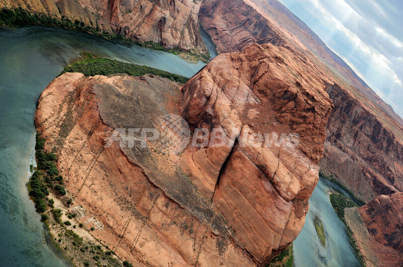 【8月31日 AFP】米アリゾナ(Arizona)州ページ(Page)近郊のパウエル湖(Lake Powell)は、全長約299キロメートル、外周は3154キロメートルで米大陸西海岸の距離より長い、巨大な人造湖。毎年約300万人の観光客が訪れる。探索できる主な渓谷は96あるが、渓谷に通じる陸路がほとんどないため、船の利用が必要だ。ページ近郊にはコロラド川(Colorado River)も流れ、川の途中には馬蹄(Horseshoe)のように蛇行して流れる「ホースシューベンド(Horse Shoe Bend)」と呼ばれる場所もある。(c)AFP