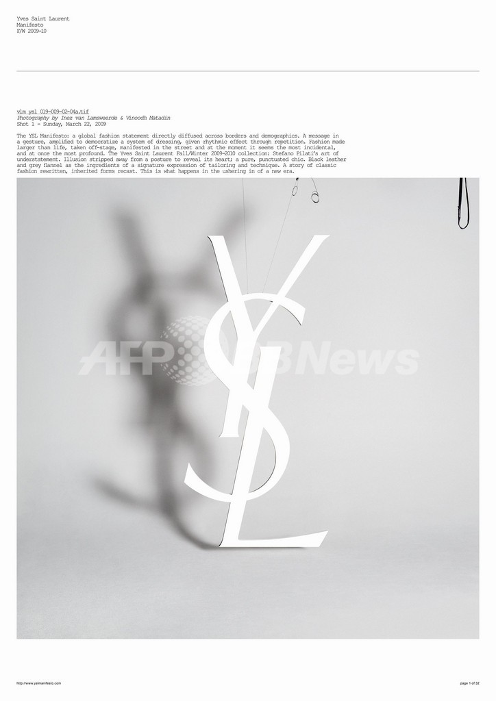 この2つのメディアを通じて最初に発信されるプロジェクトは、第5回目となるヴィジュアルペーパー「イヴ・サンローラン マニフェスト」となる。今回は、イネズ・ヴァン・ラムズウィールド(Inez van Lamsweerde)とヴィヌード・マタディン(Vinoodh Matadin)撮影によるモデルのクリスティ・ターリントン(Christy Turlington)が、09/10年秋冬コレクションに身を包んで登場する。