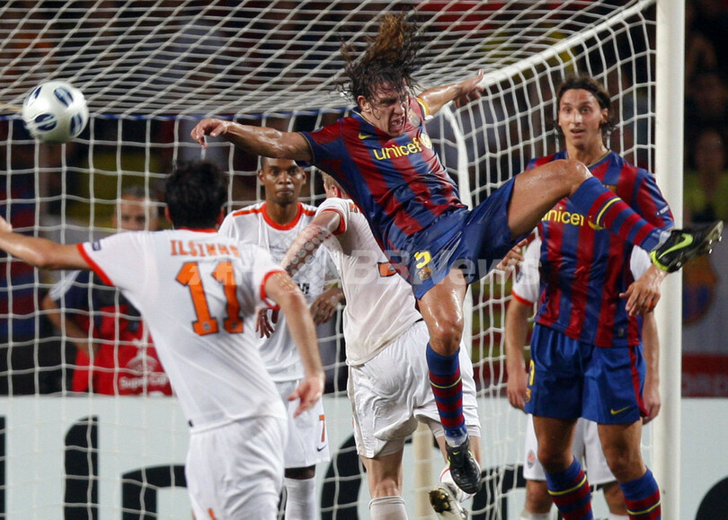 【8月29日 AFP】サッカーUEFAスーパーカップ2009(UEFA Super Cup 2009)、FCバルセロナ(FC Barcelona)対シャフタール・ドネツク(Shakhtar Donetsk)。試合は延長戦の末、2008-09シーズンの欧州チャンピオンズリーグ(UEFA Champions League 2008-09)王者バルセロナが、1-0で同シーズンUEFA杯(UEFA Cup 2008-09)王者ャフタール・ドネツクを下し、通算3度目の優勝を果たした。