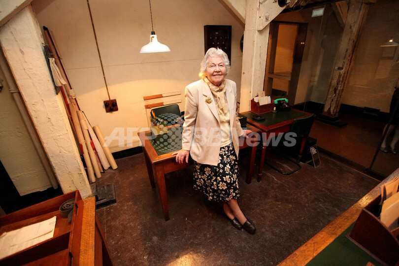 展示初日の27日に会見したマイラ・コリヤー(Myra Collyer)さんは、第2次世界大戦時、英政府の速記者としてチャーチル首相の内閣戦時執務室で働いていたという。
