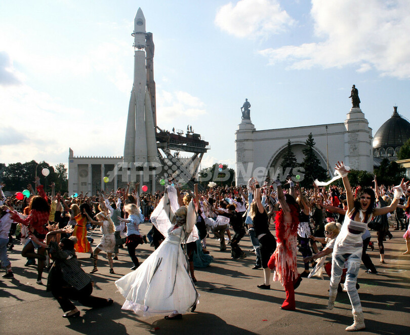 【8月29日 AFP】6月に死去したマイケル・ジャクソン(Michael Jackson)さんの誕生日を記念して29日、ロンドン(London)のトラファルガー広場(Trafalgar Square)やパリ(Paris)のトロカデロ(Trocadero)広場など世界各地で、マイケルさんがヒット曲「スリラー」のビデオで披露した有名な「ゾンビダンス」を踊るイベントが開かれた。(c)AFP