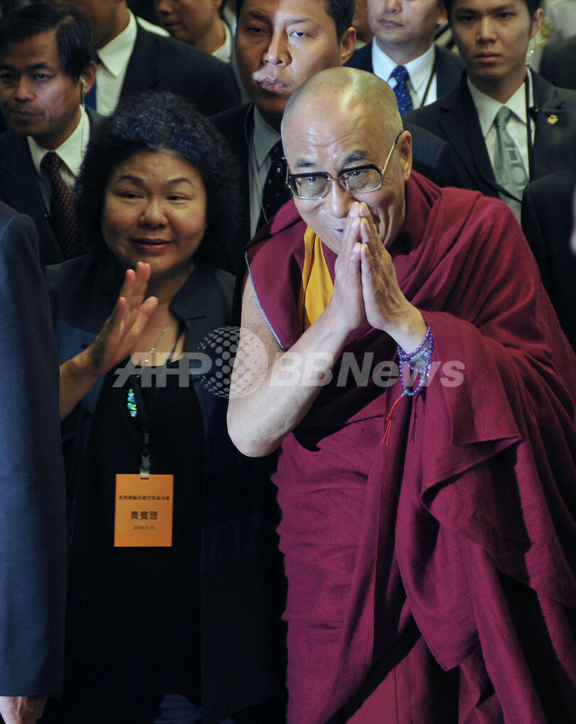 こうした中国側からの批判に対し、台湾の与党・国民党(Kuomintang、KMT)は、ダライ・ラマの訪台の目的は純粋に台風8号の被災者慰問だと強調している。今月中旬に台湾を襲った台風8号では、少なくとも571人が犠牲になった。(c)AFP/Benjamin Yeh
