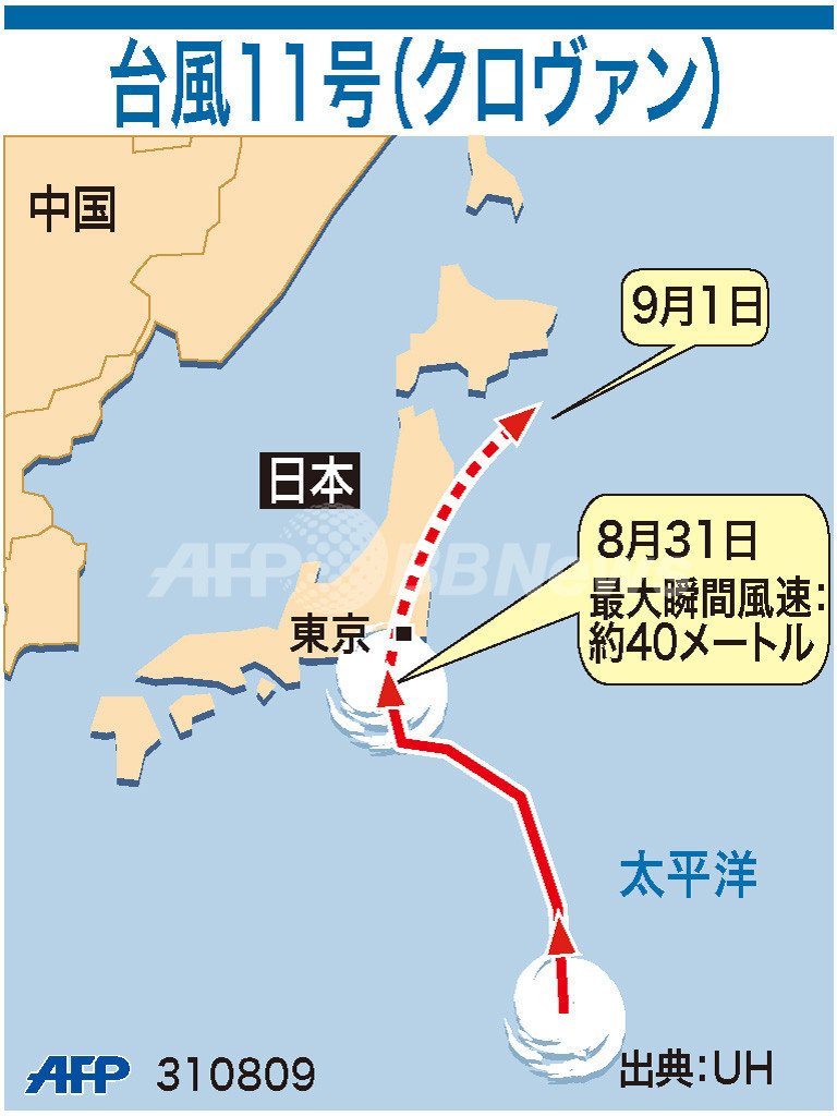 ニュース 社会 図解 【図解】台風11号の進路 2009年8月31日 15:01 発信地:東京 [ アジア・オセアニア 東京 ] このニュースをシェア (c)AFP 【8月31日 AFP】図は、台風11号の進路について示したもの。(c)AFP<ニュース解説画像一覧へ> 社会 一覧へ> メディア・報道関係・法人の方向け 写真・動画 購入のお問合せ>