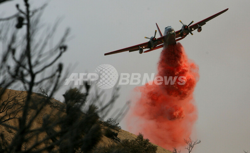 【9月1日 AFP】(写真追加)米カリフォルニア(California)州ロサンゼルス(Los Angeles)近郊で8月26日発生した山火事は、同31日も延焼を続け、焼失面積は3万4400ヘクタールとなった。この火災で消防士2人が死亡したほか、住民1万人が避難を余儀なくされている。近くにある重要通信施設にも延焼の懸念が高まっている。現場周辺の森林は乾燥して燃えやすい状態になっており、地元当局は「あらゆる方向に(炎が)広がっている」としている。(c)AFP