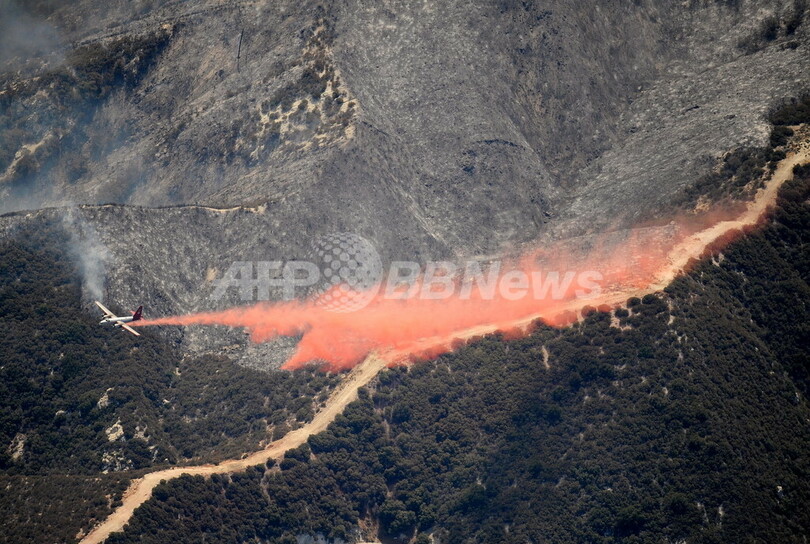 【9月1日 AFP】(写真追加)米カリフォルニア(California)州ロサンゼルス(Los Angeles)近郊で8月26日発生した山火事は、同31日も延焼を続け、焼失面積は3万4400ヘクタールとなった。この火災で消防士2人が死亡したほか、住民1万人が避難を余儀なくされている。近くにある重要通信施設にも延焼の懸念が高まっている。現場周辺の森林は乾燥して燃えやすい状態になっており、地元当局は「あらゆる方向に(炎が)広がっている」としている。(c)AFP