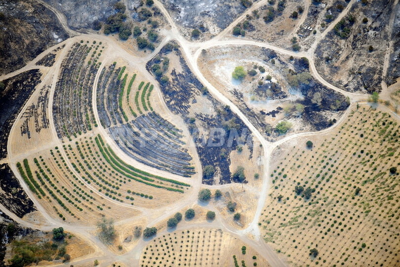 【9月1日 AFP】(写真追加)米カリフォルニア(California)州ロサンゼルス(Los Angeles)近郊で8月26日発生した山火事は、同31日も延焼を続け、焼失面積は3万4400ヘクタールとなった。この火災で消防士2人が死亡したほか、住民1万人が避難を余儀なくされている。近くにある重要通信施設にも延焼の懸念が高まっている。現場周辺の森林は乾燥して燃えやすい状態になっており、地元当局は「あらゆる方向に(炎が)広がっている」としている。(c)AFP