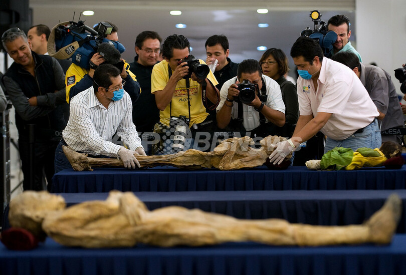 ニュース ライフ グアナフアトのミイラ展示会、メキシコ市で開催 2009年9月1日 9:16 発信地:メキシコ市/メキシコ [ 中南米 メキシコ ] このニュースをシェア ‹ › ❮ 3/8 ❯ メキシコ・グアナフアト(Guanajuato)の有名なミイラ博物館に展示されているミイラ36体の巡回展示がメキシコ市(Mexico City)で行われる。これらは、1833年のコレラ大流行で死亡した人々の遺体が自然とミイラ化したもので、グアナフアトの観光・文化の目玉となっている。写真は、31日に行われた記者会見場にミイラを展示する博物館職員(2009年8月31日撮影)。(c)AFP/Luis Acosta 画像作成中 ! 【9月1日 AFP】メキシコ・グアナフアト(Guanajuato)の有名なミイラ博物館に展示されているミイラ36体の巡回展示がメキシコ市(Mexico City)で行われる。これらは、1833年のコレラの大流行で死亡した人々の遺体が自然とミイラ化したもので、グアナフアトの観光・文化の目玉となっている。(c)AFP ライフ 一覧へ> メディア・報道関係・法人の方向け 写真・動画 購入のお問合せ>