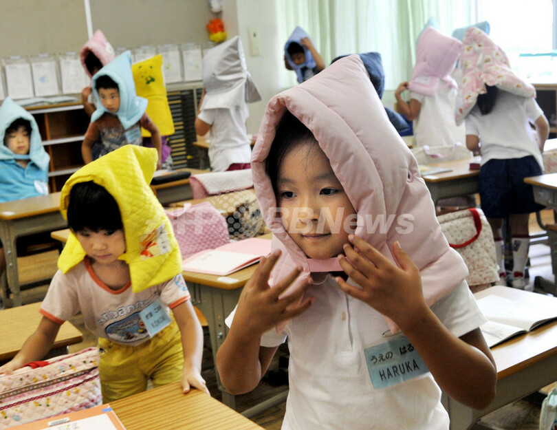 ニュース 社会 「防災の日」、各地で訓練 小学生も頭巾かぶって机の下に 2009年9月1日 17:43 発信地:東京 [ アジア・オセアニア 東京 ] このニュースをシェア ‹ › ❮ 2/5 ❯ 都内の小学校で行われた防災訓練で、防災頭巾をかぶって机の下にもぐる女子児童(2009年9月1日撮影)。(c)AFP/Yoshikazu TSUNO 画像作成中 ! 【9月1日 AFP】「防災の日」の1日、大地震に備えて全国で防災訓練が行われ、都内の小学校でも児童たちが防災頭巾をかぶり、机の下にもぐるなどの訓練を行った。(c)AFP 社会 一覧へ> メディア・報道関係・法人の方向け 写真・動画 購入のお問合せ>