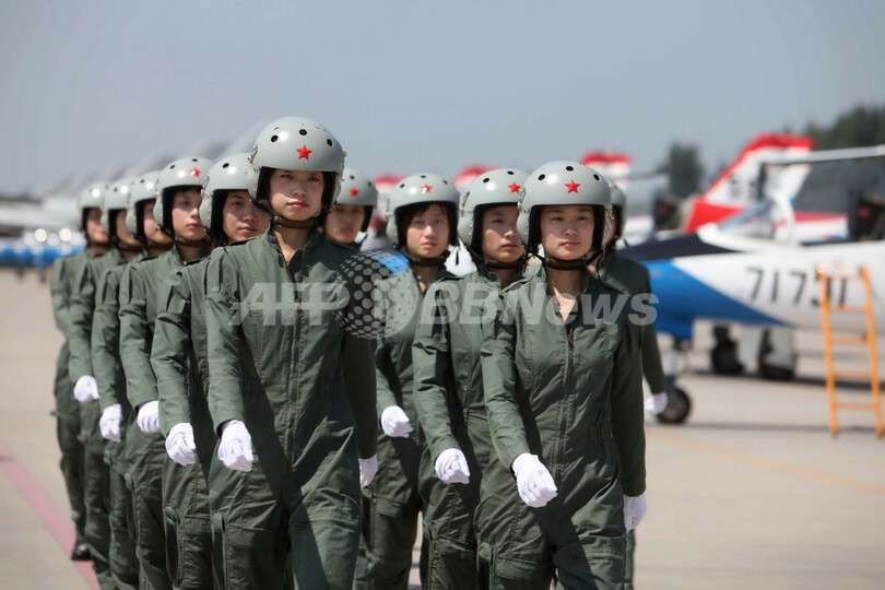 中国初の女性戦闘機パイロット、「レディース」用ヘルメット・制服に笑顔