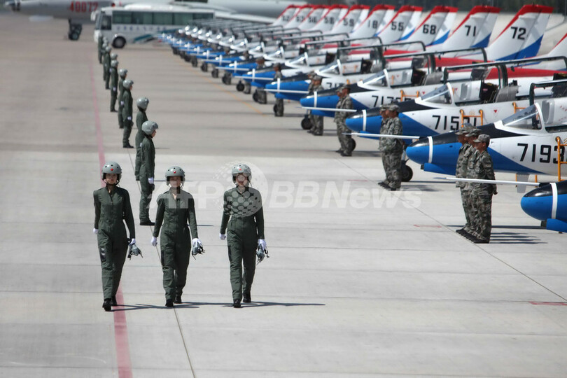 中国初の女性戦闘機パイロット、「レディース」用ヘルメット・制服に笑顔