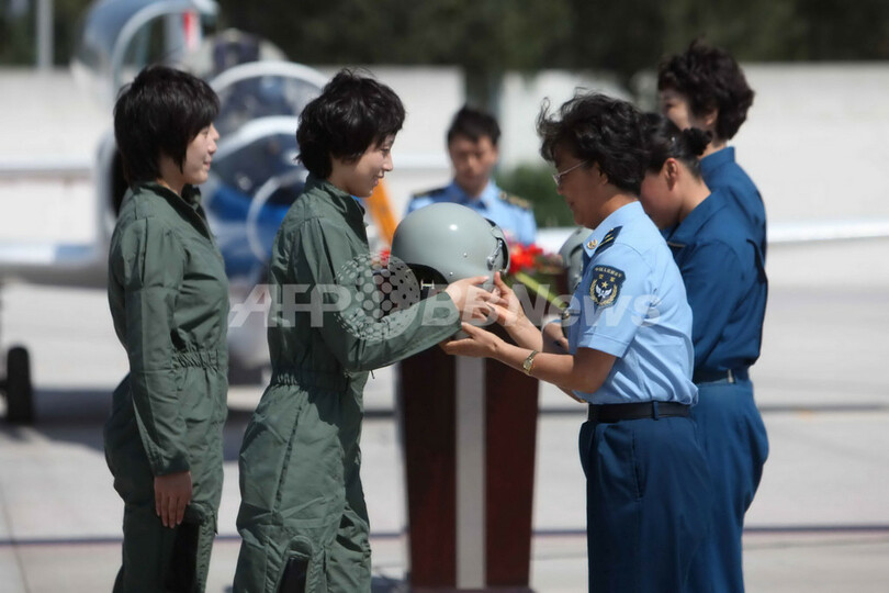 【9月1日 AFP】中国・北京(Beijing)にある中国人民解放軍(People's Liberation Army、PLA)の空軍基地で8月30日、同国初の女性戦闘機パイロットチームに女性のためにデザインされた新しいヘルメットや制服が贈られる記念式典が開かれた。女性パイロットはこれまで、男性物を使用していた。中国では早ければ2012年にも女性初の宇宙飛行士が誕生する可能性があり、その候補者は戦闘機パイロットから選ばれるという。(c)AFP