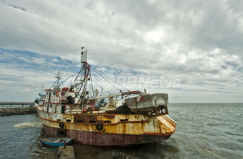 写真は、バハカリフォルニア州プエルトサンカルロス(Puerto San Carlos)でハリケーン「ヒメナ(Jimena)」により座礁した漁船(2009年9月2日撮影)。(c)AFP/Ronaldo SCHEMIDT