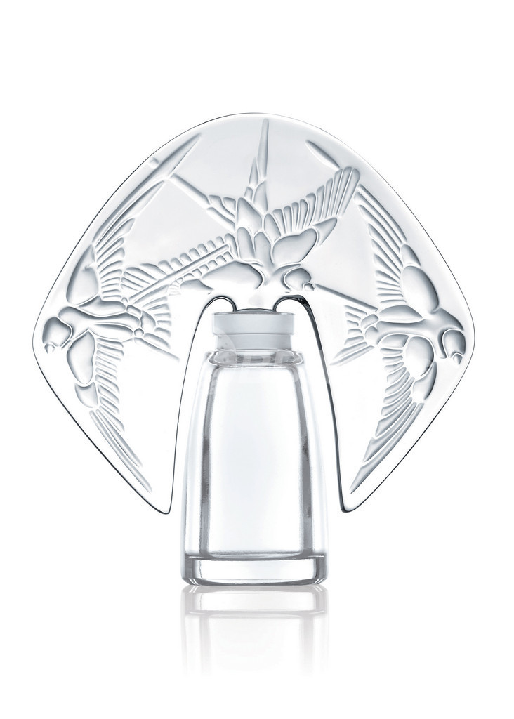 なかでも注目は、復刻コレクション「オマージュ・コレクション ―ルネ・ラリックに捧ぐ―」の一部のアイテムが世界に先駆け先行販売されること。3羽のツバメをあしらった香水瓶「イロンデル」や、クリスタル製置時計「アントワネット」などのアイテムは、いずれもラリックが1920~30年代に制作したアイコニックな作品を忠実に再現したものだ。