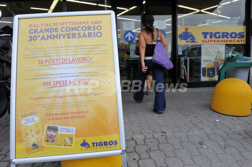 【9月3日 AFP】イタリア北部を中心に展開するスーパーマーケットチェーン、ティグロス(Tigros)はこのほど、30周年を記念して、同チェーン店舗での雇用契約を景品とした福引きキャンペーンを開始した。