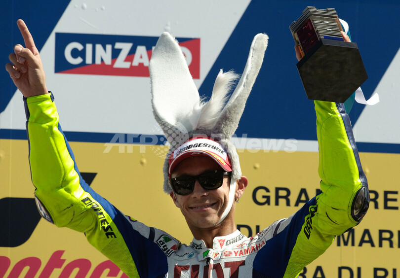 【9月7日 AFP】(写真追加)世界ロードレース選手権(WGP 2009)第13戦サンマリノGP、MotoGPクラス決勝。フィアット・ヤマハ(Fiat Yamaha)のバレンティーノ・ロッシ(Valentino Rossi、イタリア)が、44分32秒882でシーズン6勝目を挙げた。