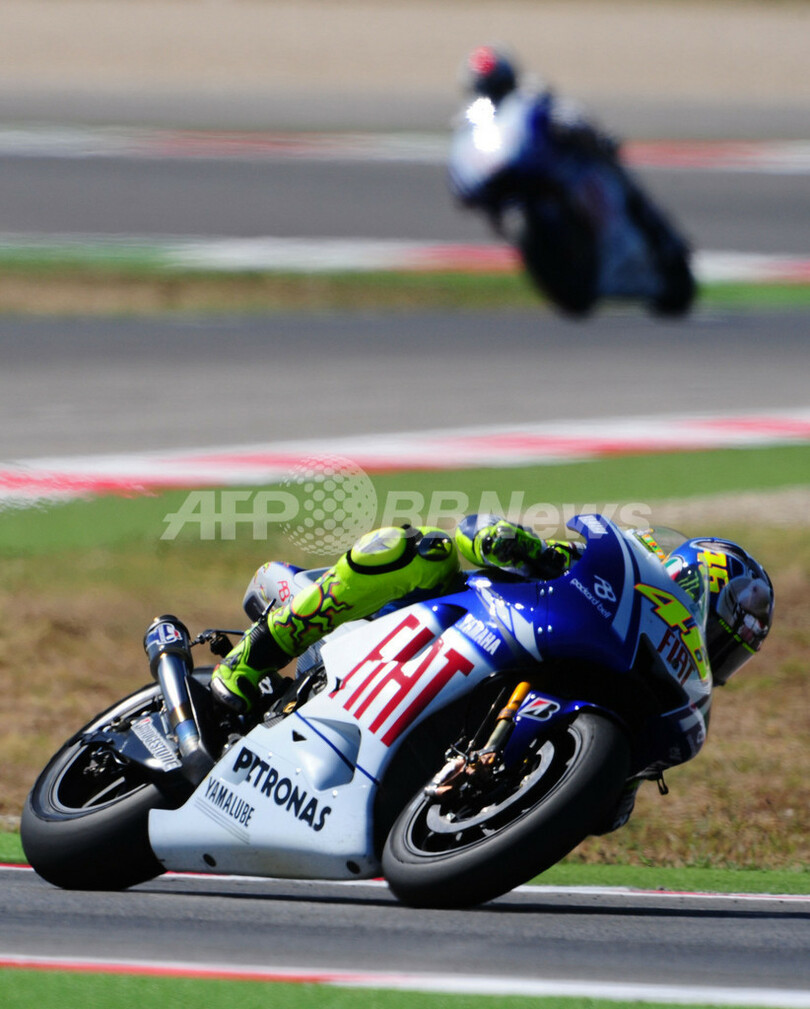 【9月7日 AFP】(写真追加)世界ロードレース選手権(WGP 2009)第13戦サンマリノGP、MotoGPクラス決勝。フィアット・ヤマハ(Fiat Yamaha)のバレンティーノ・ロッシ(Valentino Rossi、イタリア)が、44分32秒882でシーズン6勝目を挙げた。