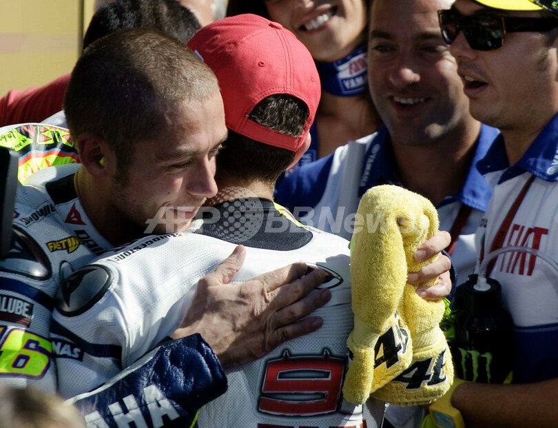 【9月7日 AFP】(写真追加)世界ロードレース選手権(WGP 2009)第13戦サンマリノGP、MotoGPクラス決勝。フィアット・ヤマハ(Fiat Yamaha)のバレンティーノ・ロッシ(Valentino Rossi、イタリア)が、44分32秒882でシーズン6勝目を挙げた。