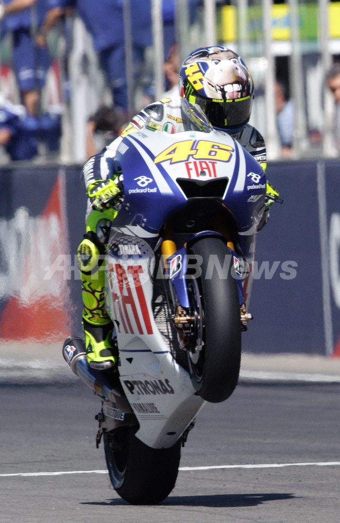 【9月7日 AFP】(写真追加)世界ロードレース選手権(WGP 2009)第13戦サンマリノGP、MotoGPクラス決勝。フィアット・ヤマハ(Fiat Yamaha)のバレンティーノ・ロッシ(Valentino Rossi、イタリア)が、44分32秒882でシーズン6勝目を挙げた。