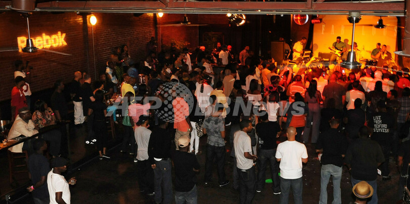 3日には米ジョージア州アトランタ(Atlanta)市内の「フットロッカー」店舗内にてイベントが行われ、同夜にはライブコンサートが開催された。(c)AFP/Getty Images