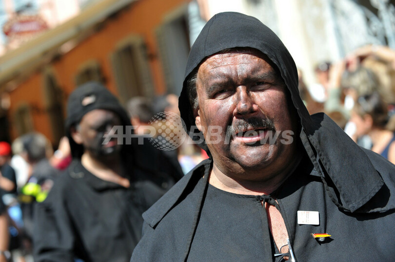 写真はパレードに参加した煙突掃除人の男性(2009年9月6日撮影)。(c)AFP/GIUSEPPE CACACE