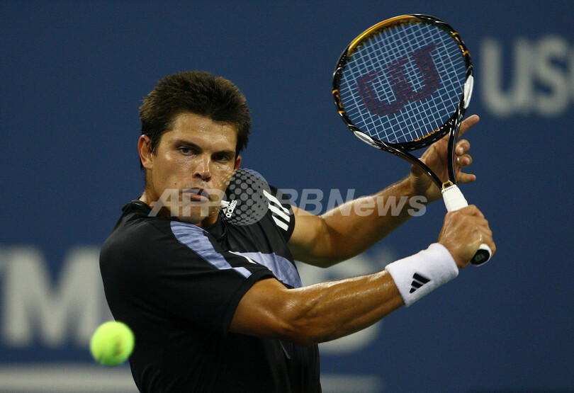マレーは4回戦で大会第16シードのマリン・チリッチ(%%Marin Cilic%%、クロアチア)と対戦する。写真はボールを見つめるタイラー・デント。(2009年9月6日撮影)(c)AFP/Getty Images/Julian Finney