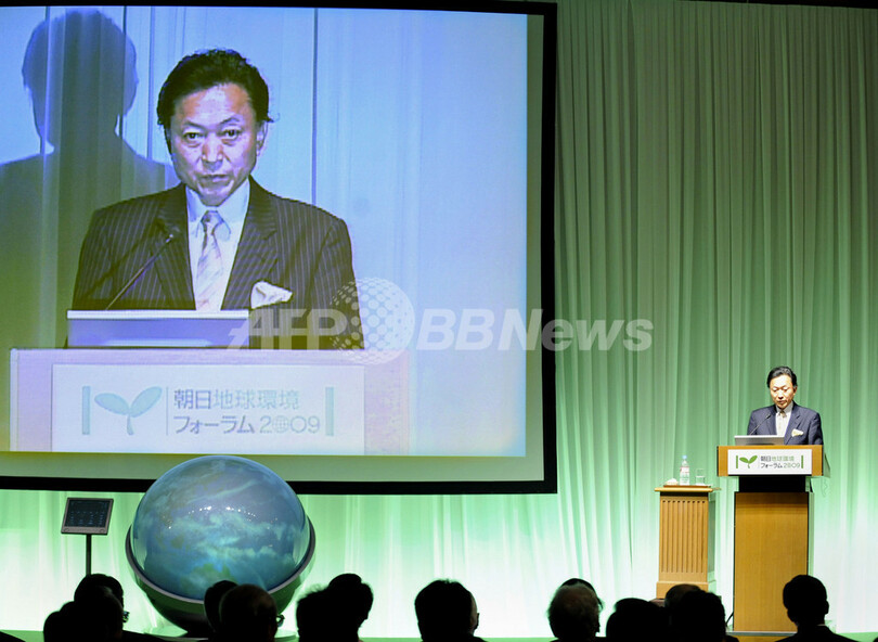 【9月7日 AFP】民主党(Democratic Party of Japan、DPJ)の鳩山由紀夫(Yukio Hatoyama)代表は7日、都内で開かれた環境問題に関するフォーラムで講演し、日本の温室効果ガス削減目標について、2020年までの中期目標で「1990年比25%削減」を目指すと述べた。