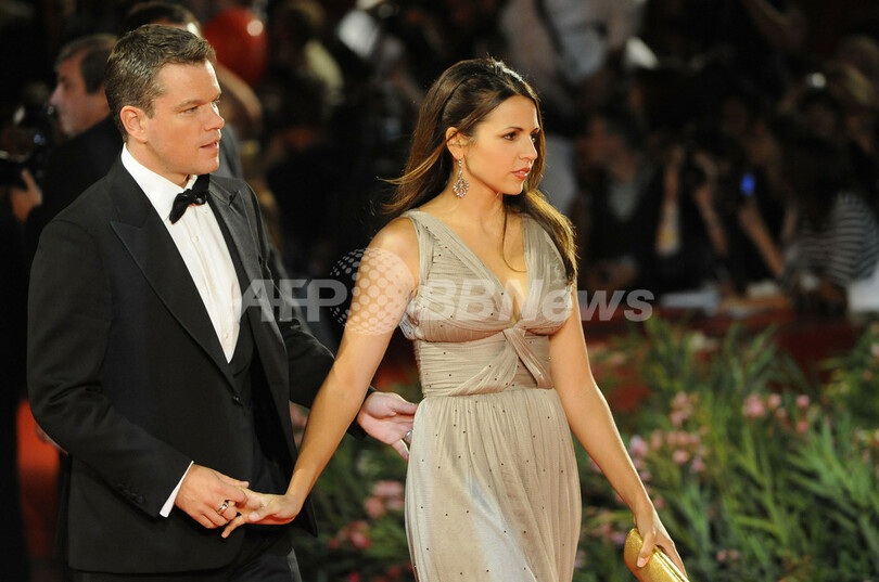 一方のデイモンは役になりきるために15キロも増量したという。「体重を増やすのはとっても簡単だったよ。それにとても楽しかった。たぶん、仕事の中では一番楽しかったと思う。だってジムに通う必要もなく、目に見えるものすべてをただ食べるだけで良かったんだから」(c)AFP
