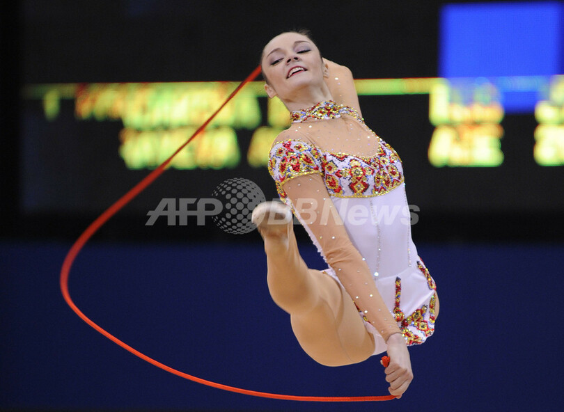 【9月9日 AFP】第29回世界新体操選手権大会(29th Rhythmic Gymnastics World Championships)は8日、フープ、ロープの個人種目別決勝などが行われ、北京五輪個人総合金メダルのエフゲニヤ・カナエワ(Evgeniya Kanaeva、ロシア)が、2冠を達成した。