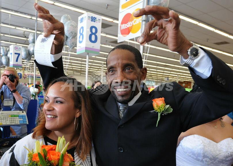 【9月9日 AFP】(写真追加)米国版100円ショップチェーン「99センツ・オンリー・ストアズ(99 Cents Only Stores)」は9日、不景気の昨今お金がないという9組のカップルに、99セント(約91円)の結婚式を提供した。