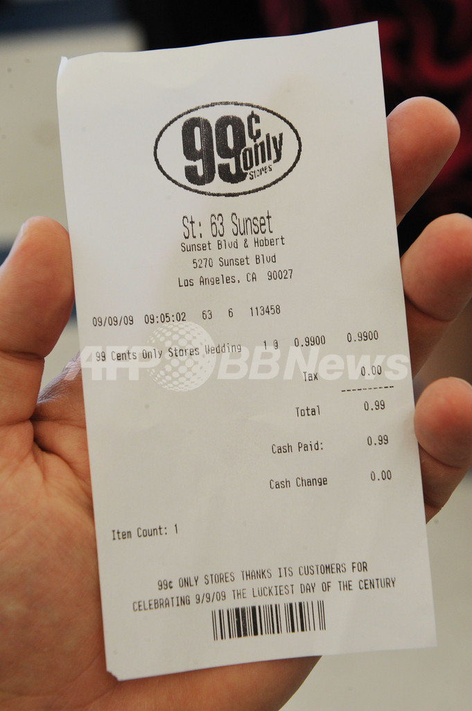 カリフォルニア(California)州ハリウッド(Hollywood)のサンセット大通り(Sunset Boulevard)にある支店が、「9」が並ぶ2009年9月9日を記念して提供したもの。カップルは、結婚式を挙げたあとで99ドル99セント(約9230円)のご祝儀をもらい、「ロサンゼルス(Los Angeles)市内のとある有名なロマンチックな場所」へ案内された。