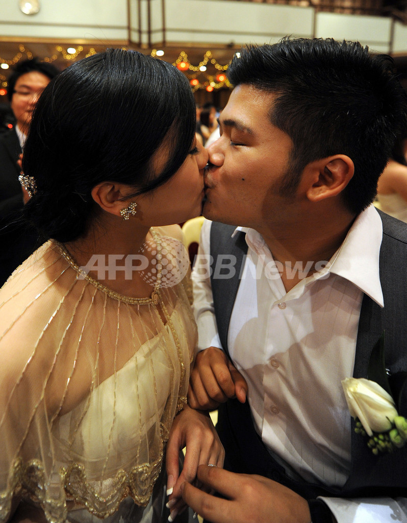 ニュース ライフ こぼれ話 マレーシアで集団結婚式、「09年9月9日」は縁起の良い日 2009年9月9日 19:28 発信地:クアラルンプール/マレーシア [ アジア・オセアニア マレーシア ] このニュースをシェア ‹ › ❮ 1/7 ❯ マレーシアの首都クアラルンプール(Kuala Lumpur)にある中国寺院、天后宮(Thean Hou)で9日朝、約200組の中国系マレーシア人カップルが一斉に結婚式を挙げた。数字の「999」は、中国で長寿と永遠の愛を意味し、幸福と結婚生活が末永く続くと信じられているため、2009年9月9日は縁起の良い日とされる。写真は、天后宮で行われた集団結婚式で、結婚指輪を交換しキスを交わす新郎新婦(2009年9月9日撮影)。(c)AFP/Saeed KHAN 画像作成中 ! 【9月9日 AFP】マレーシアの首都クアラルンプール(Kuala Lumpur)にある中国寺院、天后宮(Thean Hou)で9日朝、約200組の中国系マレーシア人カップルが一斉に結婚式を挙げた。(c)AFP ライフ 一覧へ> メディア・報道関係・法人の方向け 写真・動画 購入のお問合せ>
