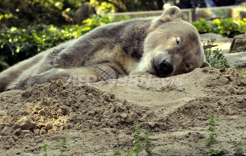 写真は、ベルリン動物園の屋外施設で眠るクヌート(2009年9月8日撮影)。(c)AFP/DDP/THEO HEIMANN