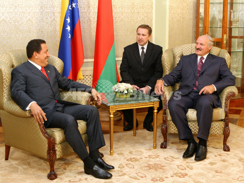 【9月9日 AFP】イタリア・ベネチア(Venice)でベネチア国際映画祭(Venice International Film Festival)のレッドカーペットに姿を現し観衆を驚かせたウゴ・チャベス(Hugo Chavez)ベネズエラ大統領は9日、ベラルーシを訪問した。米国から「欧州最後の独裁者」と非難された同国のアレクサンドル・ルカシェンコ(Alexander Lukashenko)大統領との会談で、チャベス大統領は恒例のユーモアを交えた米国批判を繰り出した。