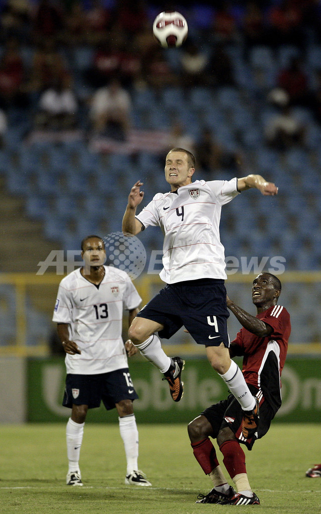【9月10日 AFP】2010年サッカーW杯南アフリカ大会(2010 World Cup)北中米カリブ海最終予選、トリニダード・トバゴ対米国。試合は後半17分にリカルド・クラーク(Ricardo Clark)が得点を決め、米国が1-0で勝利した。米国は勝ち点を16に伸ばし首位に立った。(c)AFP