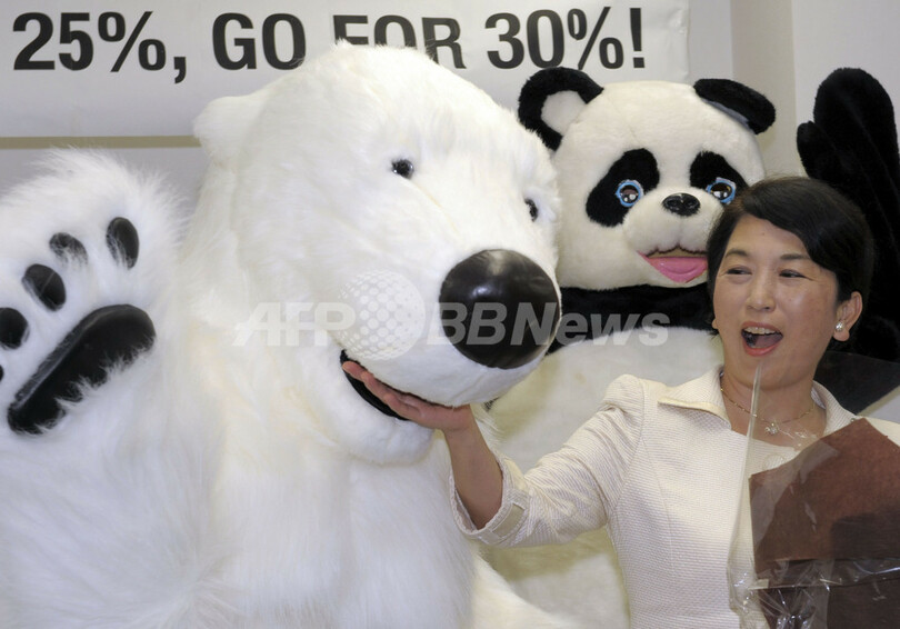 【9月10日 AFP】WWFジャパン(WWF Japan)など50以上の非政府組織(NGO)が参加する「MAKE the RULE」キャンペーンは10日、民主党(Democratic Party of Japan、DPJ)が7日に発表した2020年までの温室効果ガス「1990年比25%削減」目標を歓迎し、民主党の岡田克也(Katsuya Okada)幹事長や社民党(Social Democratic Party)の福島瑞穂(Mizuho Fukushima)党首らにバラの花束を手渡した。イベントは「Yes 25%, Go for 30%」 と題され、中期目標30%削減を要望して30本のバラが渡されたという。(c)AFP