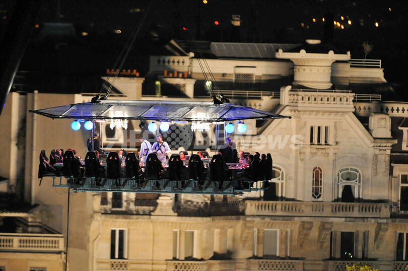 ニュース ライフ こぼれ話 パリ上空50メートルで「空中ディナー」 2009年9月12日 19:11 発信地:パリ/フランス [ ヨーロッパ フランス ] このニュースをシェア ‹ › ❮ 8/12 ❯ パリ(Paris)で開催された空中ディナーイベント「Dinner in the Sky」(2009年9月11日撮影)。(c)AFP/MIGUEL MEDINA 画像作成中 ! 【9月12日 AFP】パリ(Paris)で11日、上空50メートルにクレーンでつり下げられたテーブルで食事を楽しむ空中ディナーイベント「Dinner in the Sky」が始まった。イベントは5日間の日程で、1回につき22人ずつがディナーを楽しむことができる。初日の11日にはエリゼ宮(Elysee Palace)や有名ホテルのシェフらが、空中ディナーを楽しんだ。主催は「Cuisine Creative」誌。(c)AFP ライフ 一覧へ> メディア・報道関係・法人の方向け 写真・動画 購入のお問合せ>
