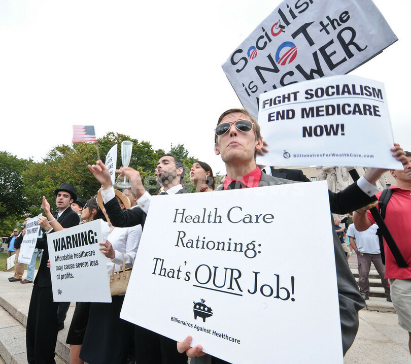 デモ行進の出発点となったホワイトハウス(White House)に近いフリーダム・プラザ(Freedom Plaza)には大勢の人が集まり、予定された午前11時30分より早くスタートした。参加者は手製のポスターなどを掲げ、オバマ大統領が進める医療改革などへの反対を叫んだ。