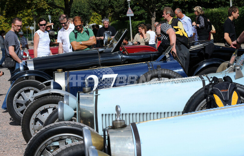 写真は、パレード前にブガッティ車を見学する人いと(2009年9月13日撮影)。(c)AFP/JOHANNA LEGUERRE