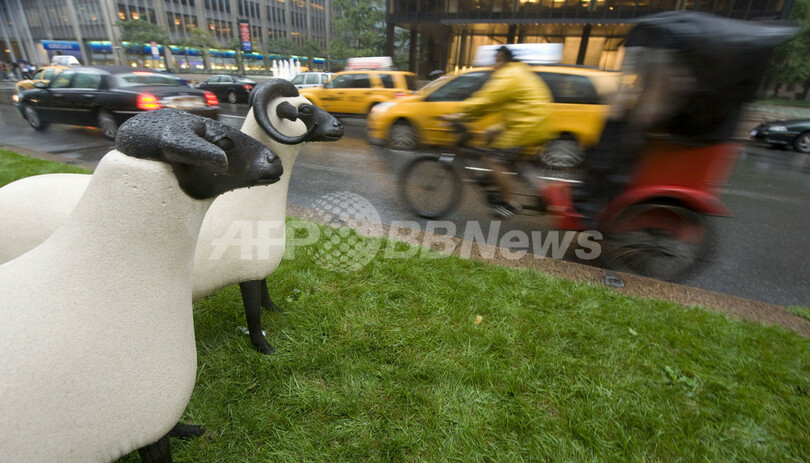 渋滞横目にのんびり?NY目抜き通りにヒツジの群れ出現