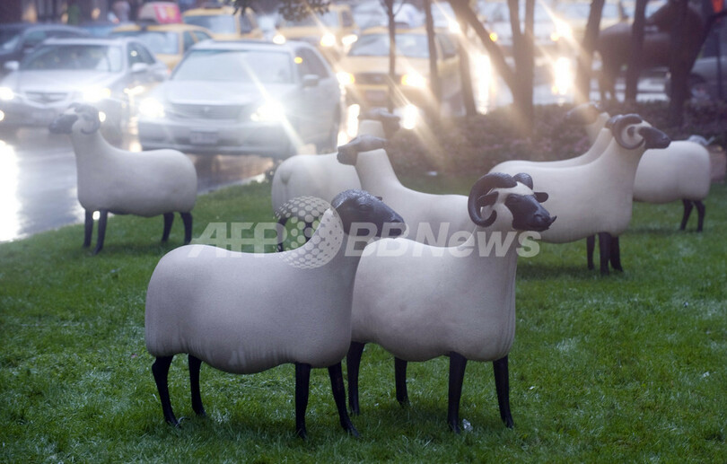 【9月14日 AFP】米ニューヨーク(New York)で開催中の野外パブリックアート展「ニューヨーク・シティ・パークス・パブリックアートプログラム(New York City Parks Public Art Program)」の一環で、フランスの芸術家クロード&フランソワ・グザビエ・ララン(Claude & Francois-Xavier Lalanne)夫妻の野外展覧会が開かれている。同夫妻の大規模野外展としては米国初で、エポキシ樹脂とブロンズで作られた実物大のヒツジ12匹の彫刻作品「Moutons(ムートン)」などが展示されている。この展覧会には、ポール・カスミンギャラリー(Paul Kasmin Gallery)と(パークアベニュー彫刻委員会基金Fund for Park Avenue Sculpture Committee)が協力している。(c)AFP