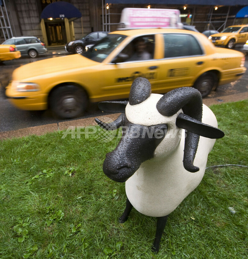 【9月14日 AFP】米ニューヨーク(New York)で開催中の野外パブリックアート展「ニューヨーク・シティ・パークス・パブリックアートプログラム(New York City Parks Public Art Program)」の一環で、フランスの芸術家クロード&フランソワ・グザビエ・ララン(Claude & Francois-Xavier Lalanne)夫妻の野外展覧会が開かれている。同夫妻の大規模野外展としては米国初で、エポキシ樹脂とブロンズで作られた実物大のヒツジ12匹の彫刻作品「Moutons(ムートン)」などが展示されている。この展覧会には、ポール・カスミンギャラリー(Paul Kasmin Gallery)と(パークアベニュー彫刻委員会基金Fund for Park Avenue Sculpture Committee)が協力している。(c)AFP
