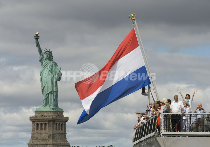 【9月14日 AFP】1609年に英国人探検家ヘンリー・ハドソン(Henry Hudson)が、オランダ船「ハーフ・ムーン(Half Moon)」号で現在の米ニューヨーク(New York)州ニューヨーク湾(New York Harbor)に到達してから400年を記念する行事のひとつとして、現地で米蘭友好式典が催された。(c)AFP