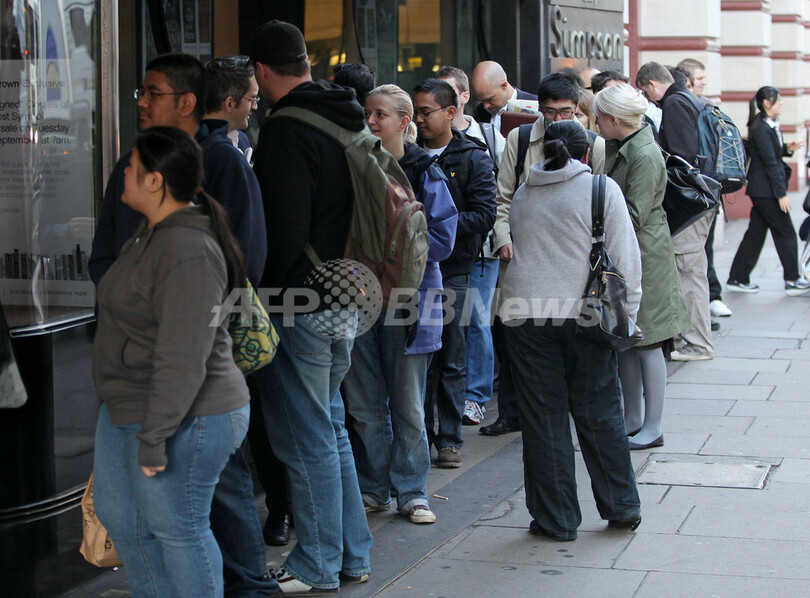 2003年の大ヒット小説『ダ・ヴィンチ・コード(The Da Vinci Code)』の続編、『The Lost Symbol(ザ・ロスト・シンボル)』(英語版)が15日、世界で発売された。今回は米ワシントンD.C.(Washington D.C.)を舞台に、ロバート・ラングドン(Robert Langdon)教授が秘密結社「フリーメイソン(Freemason)」に迫る。英国では、著者ダン・ブラウン(Dan Brown)氏のサインが入った同国版200冊も発売され、オーストラリア・シドニー(Sydney)では、誰が一番最初に読み終えるかという大会が行われた。写真は、英ロンドン(London)市内の書店で、同著の発売を待つ人びと(2009年9月15日撮影)。(c)AFP/Shaun Curry